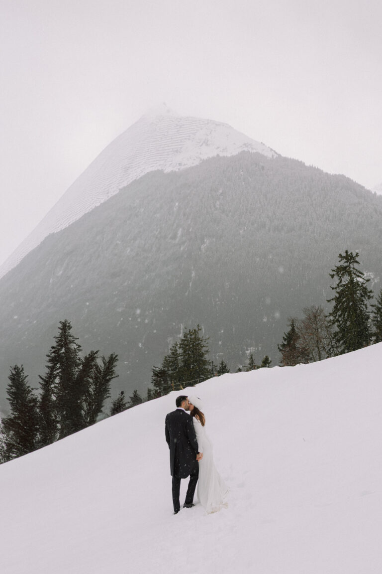 El primer día nos recibió la nieve, suave y constante, como si quisiera formar parte de la historia. Este pequeño video muestra esta primera parte de este maravilloso viaje, donde cada copo de nieve, cada rincón y cada carcajada (porque hubo muchísimas) dibujaron esos contrastes perfectos sobre las cumbres blancas y los valles verdes que fueron el marco de una sesión de postboda que hoy nos emociona profundamente mostrar.